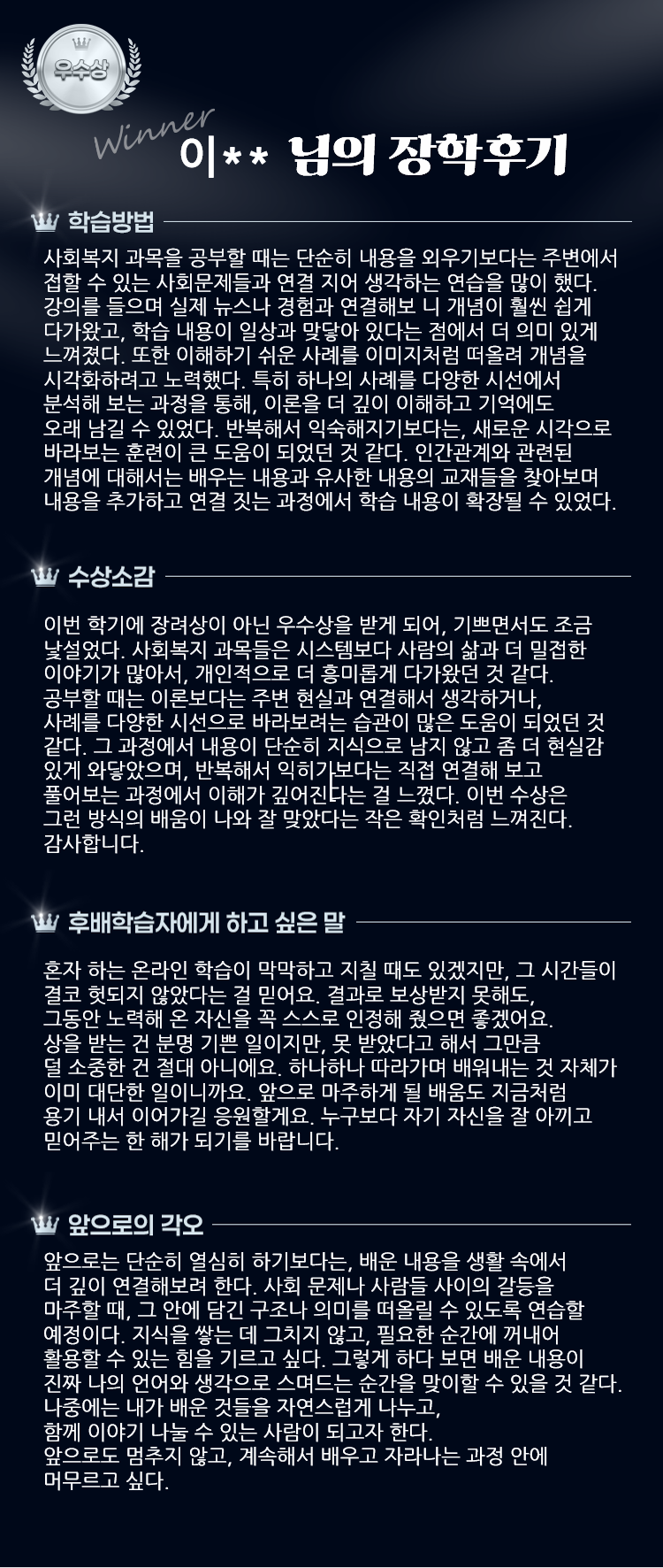 [2024³â 2Çбâ] ¡Ú¿ì¼ö»ó¡Ú ÀÌ** Çпì´ÔÀÇ ¼ºÀû¿ì¼ö ÀåÇÐÈıâ